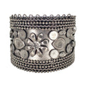 Get this trendy piece of silver oxidized floral design cuff bangle for women. It is a perfect fashion-forward choice to go with all the festive outfits. A well-crafted bangle comes in a free size. Beautify with a floral pattern around it. Pair with any ethnic and contemporary wear. It gives you a tribal and classic look. Trust us with the top-notch quality of the product by Abhinn.