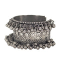 Get this Beautiful piece of silver oxidized floral ghungroo cuff bangle for women. It's a well-crafted floral design bangle in a free size. It's Featuring a floral pattern around it with ghungroo. This bracelet is perfect pick for your festive look. Timeless statement design, will give you an elegant look that you have always dreamt off! Trust us with the top-notch quality of the product by Abhinn.