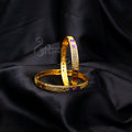 "A beautiful gold-plated bangle set is a must-have in your accessories. It is a set of two bangles. They have a golden coloured body with floral motif designs. There are stones that are studded on to it which makes it look attractive. The colour pop of the stones contrasts well with the golden coloured bangle. A perfect option to wear it on special occasions. Pair it up with ethnic outfit and you are sure to look good. Let the bangles stand out with their unique design!"