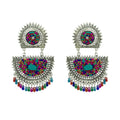 Handmade Multi Color Beaded Silver Oxidised Dangler Earrings