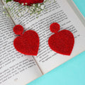 Handmade Vibrant Red Heart Dangler Beaded Earrings