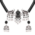 Gaze at yourself after wearing this exceptionally beautiful Elephant design necklace set. The Necklace comes with intricately carved earrings with red peals and shiny stones. The Red and White pearls tassels add another dimension to the Necklace and earrings. The nickel-free oxidized polish and high-grade material makes it skin-friendly. Deeply rooted in the culture of India, the set has an aesthetic value attached to it. Match it with any Indian traditional outfit and also ready to give you a royal and elegant look.