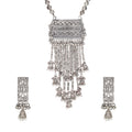 Abhinn Silver Oxidised Temple Design With Hanging Silver Beads Pendant Set For Women